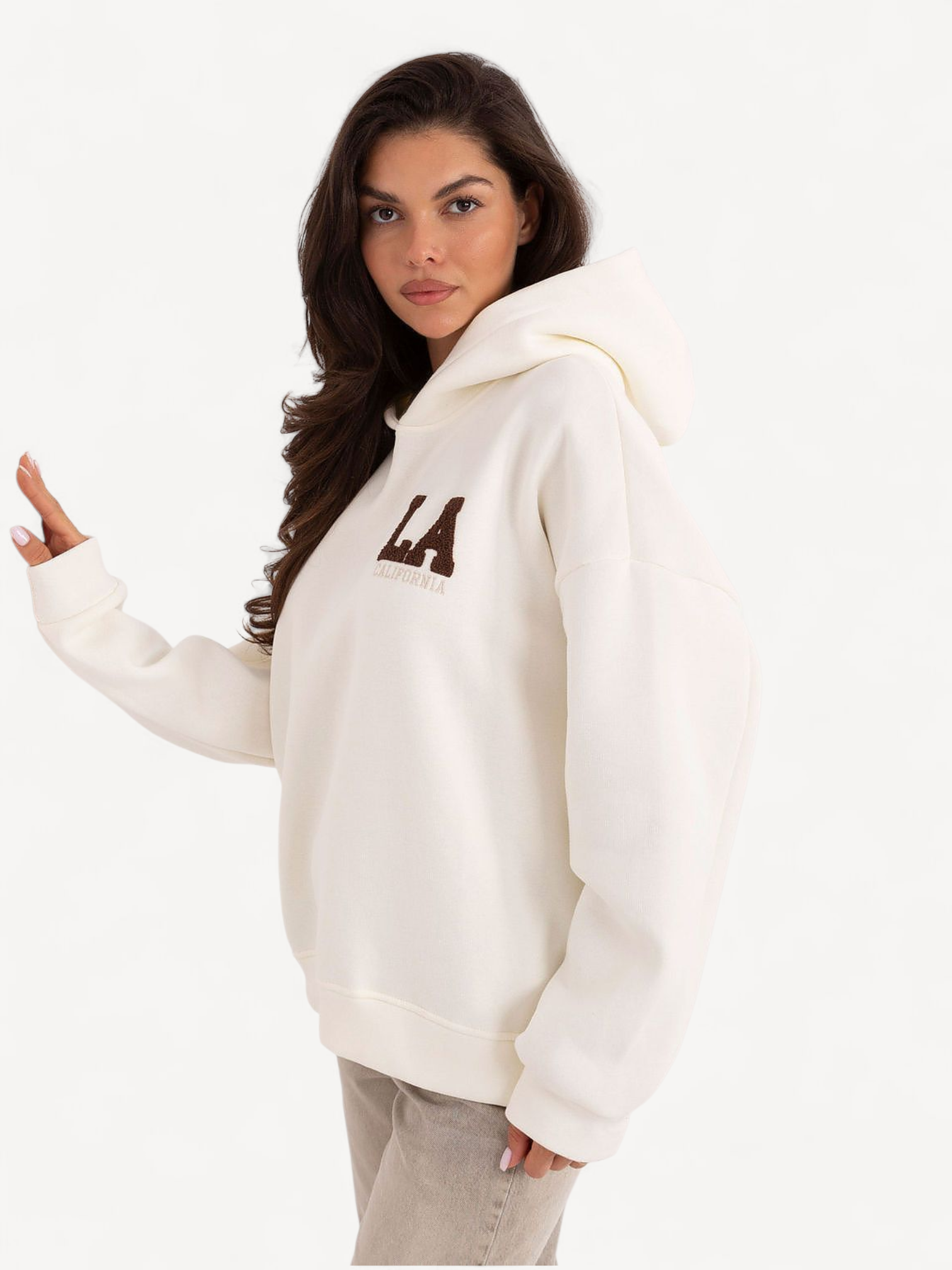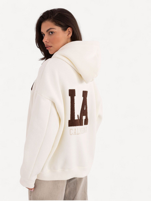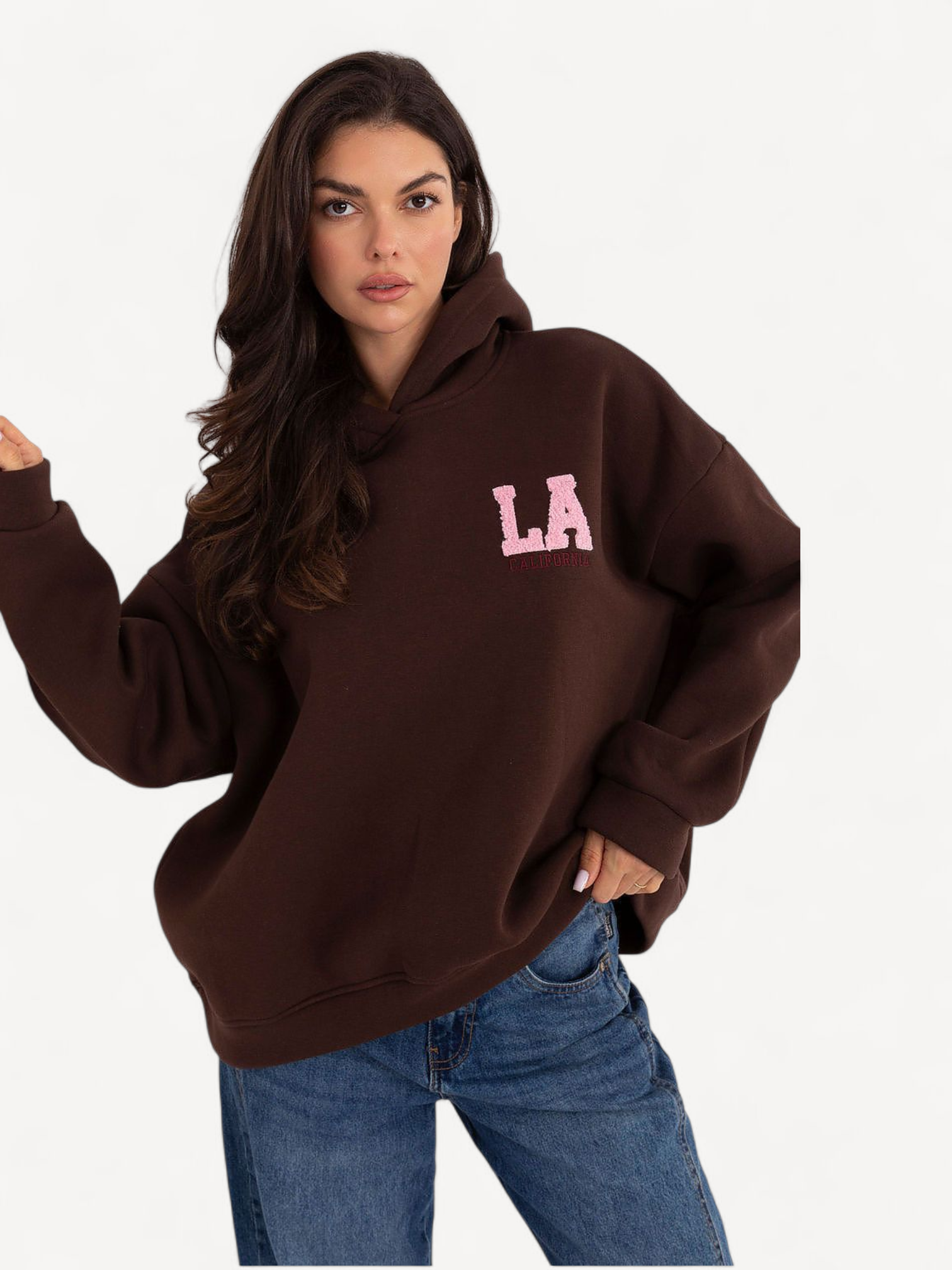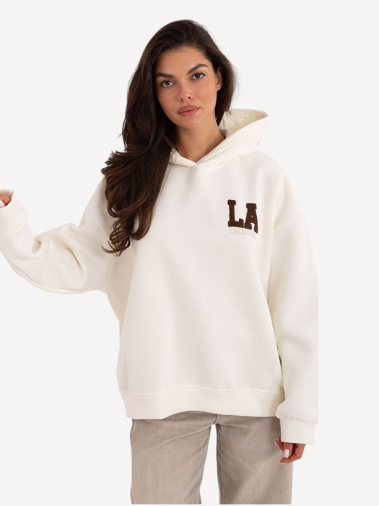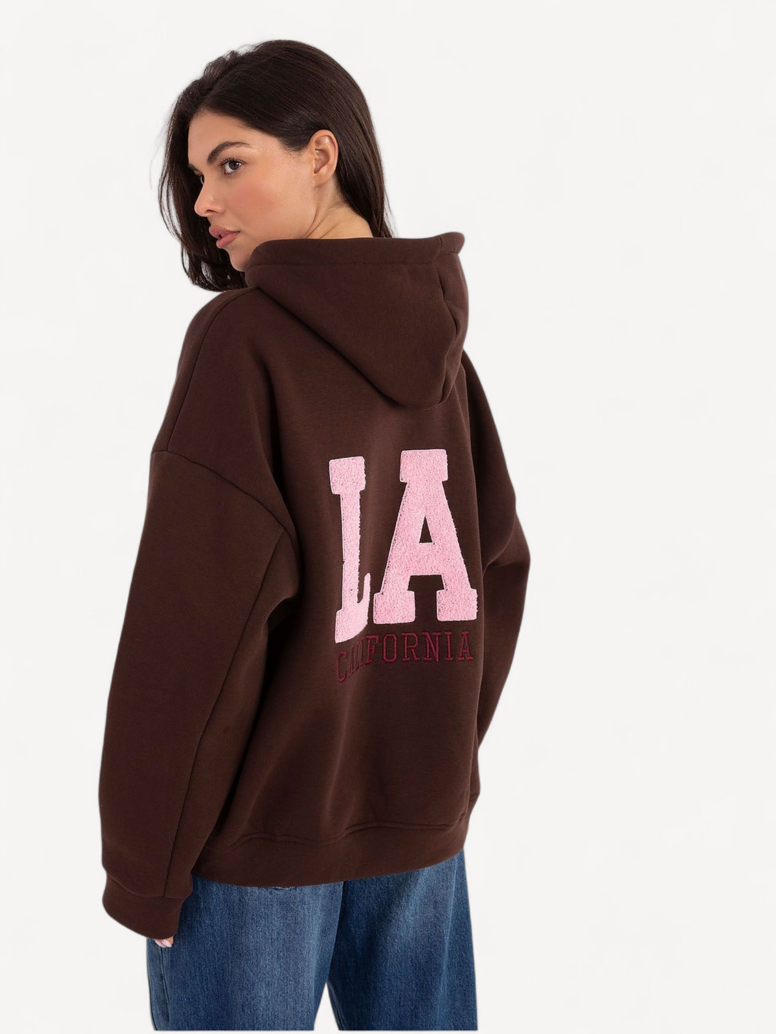 Casual dameshoodie van zachte katoen-polyestermix voor comfort en duurzaamheid. Met capuchon, lange mouwen en trendy geborduurde teksten voor een moderne, casual look. Ideaal voor koelere dagen en dagelijkse outfits met een modieuze twist.