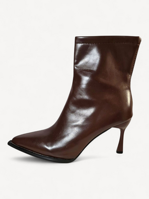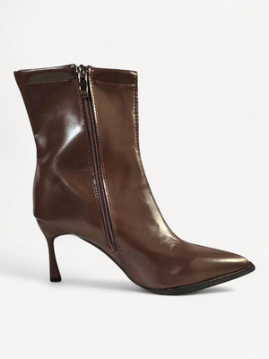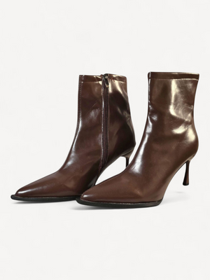 Trendy en tijdloos in één. Deze bruine enkellaarzen met een doorlopende zwarte zool en een elegante hak van 8 cm zijn perfect te combineren met elke outfit. Comfortabel én stijlvol, zodat jij moeiteloos de hele dag straalt.