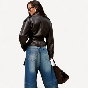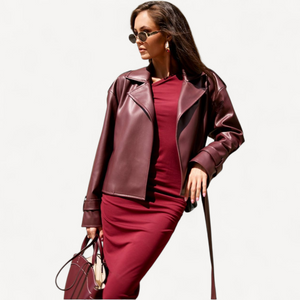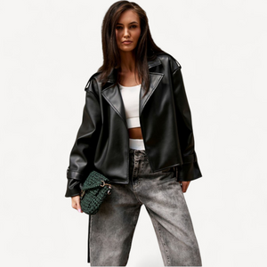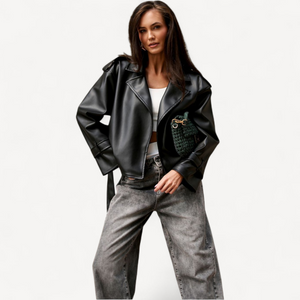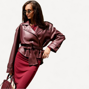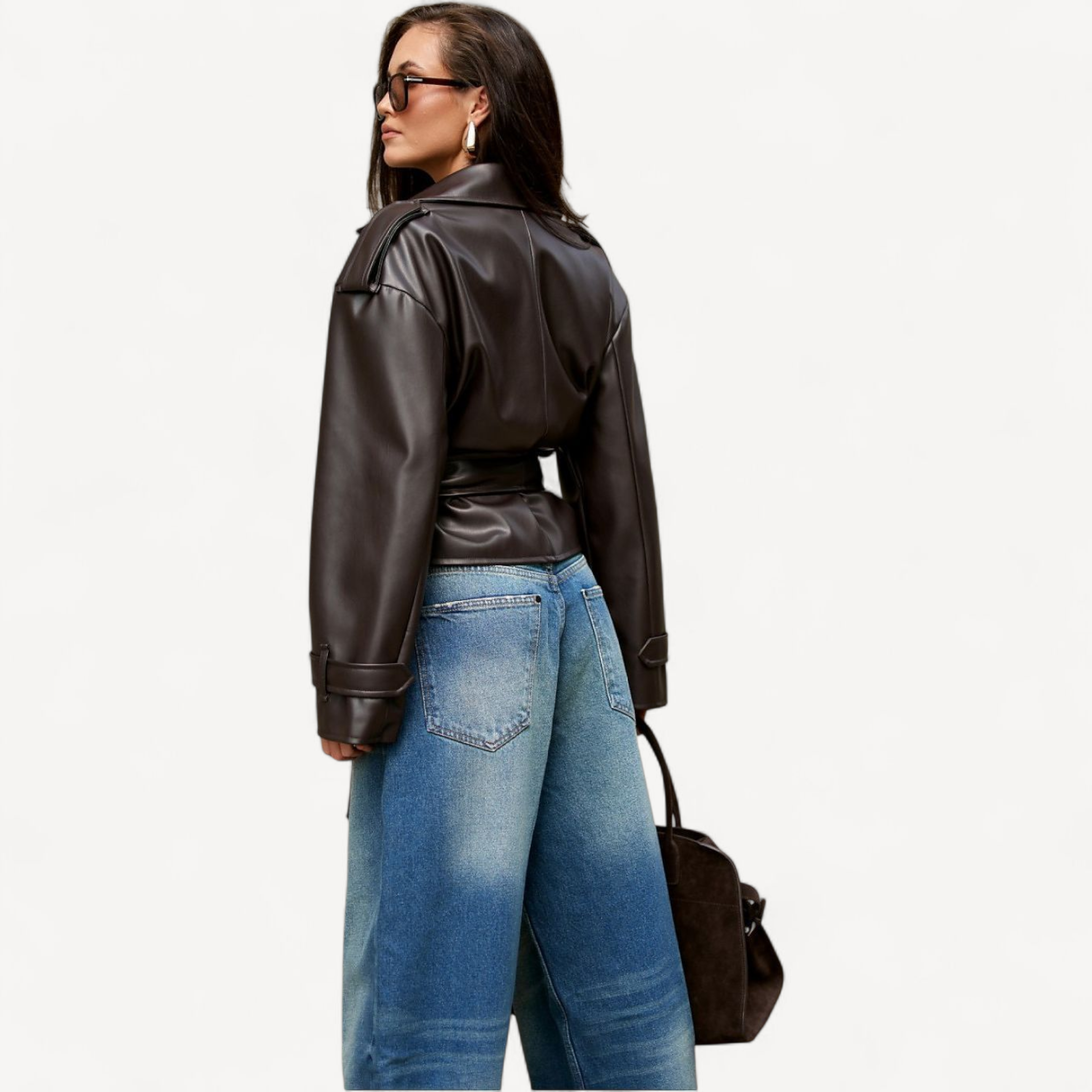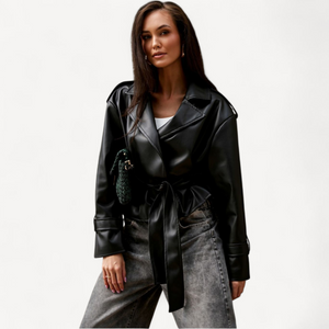 De Faja-jacket van imitatieleer combineert elegantie met comfort. Met tailleaccent, brede revers en licht oversized mouwen is hij perfect voor zowel chique outfits met jurk en hakken als casual looks met jeans en sneakers.