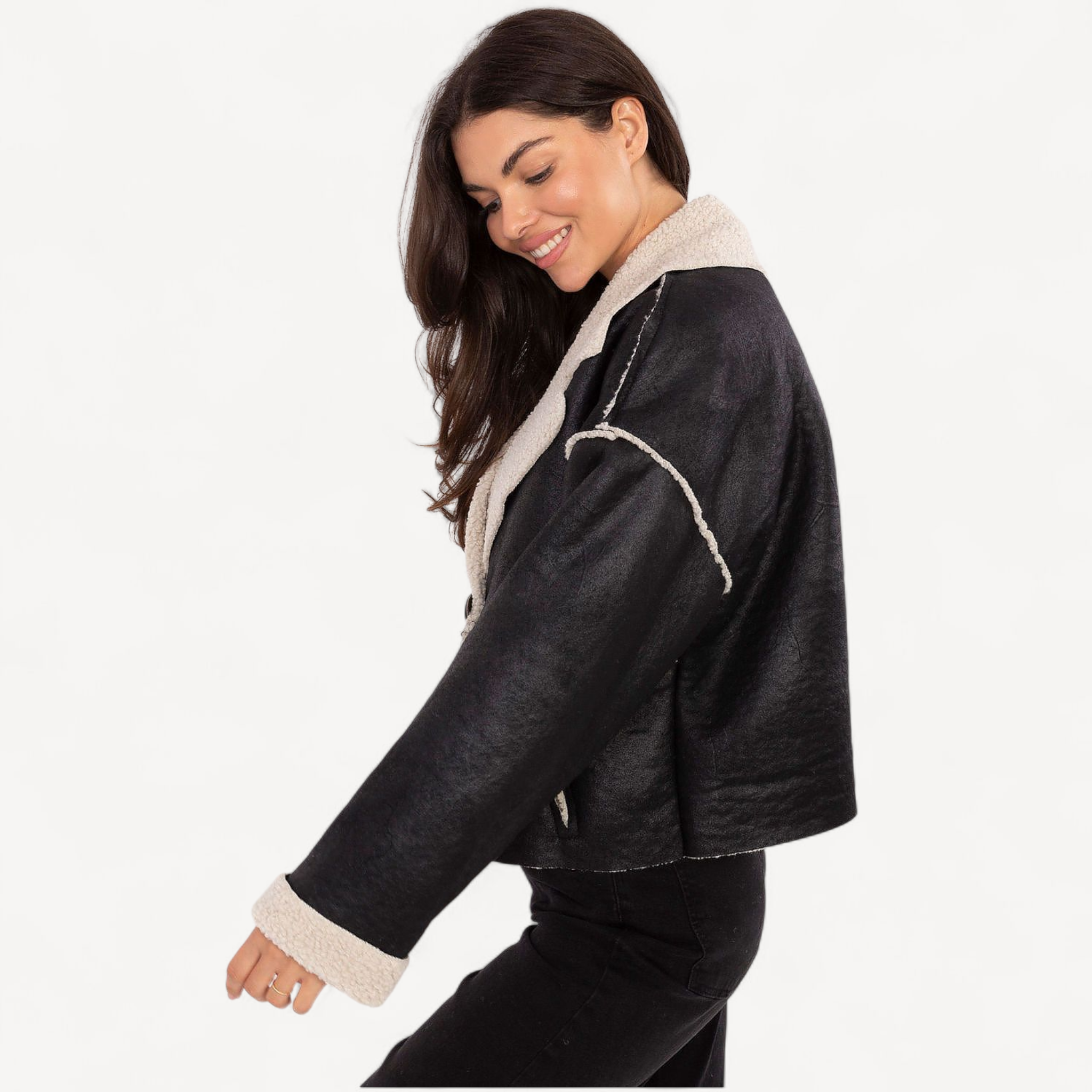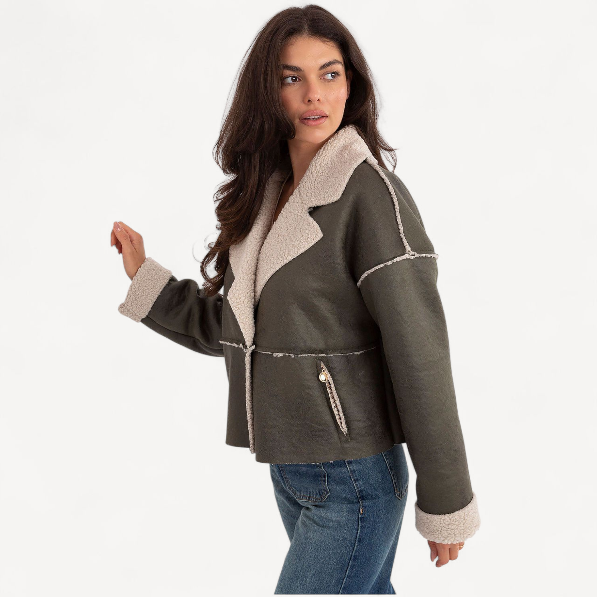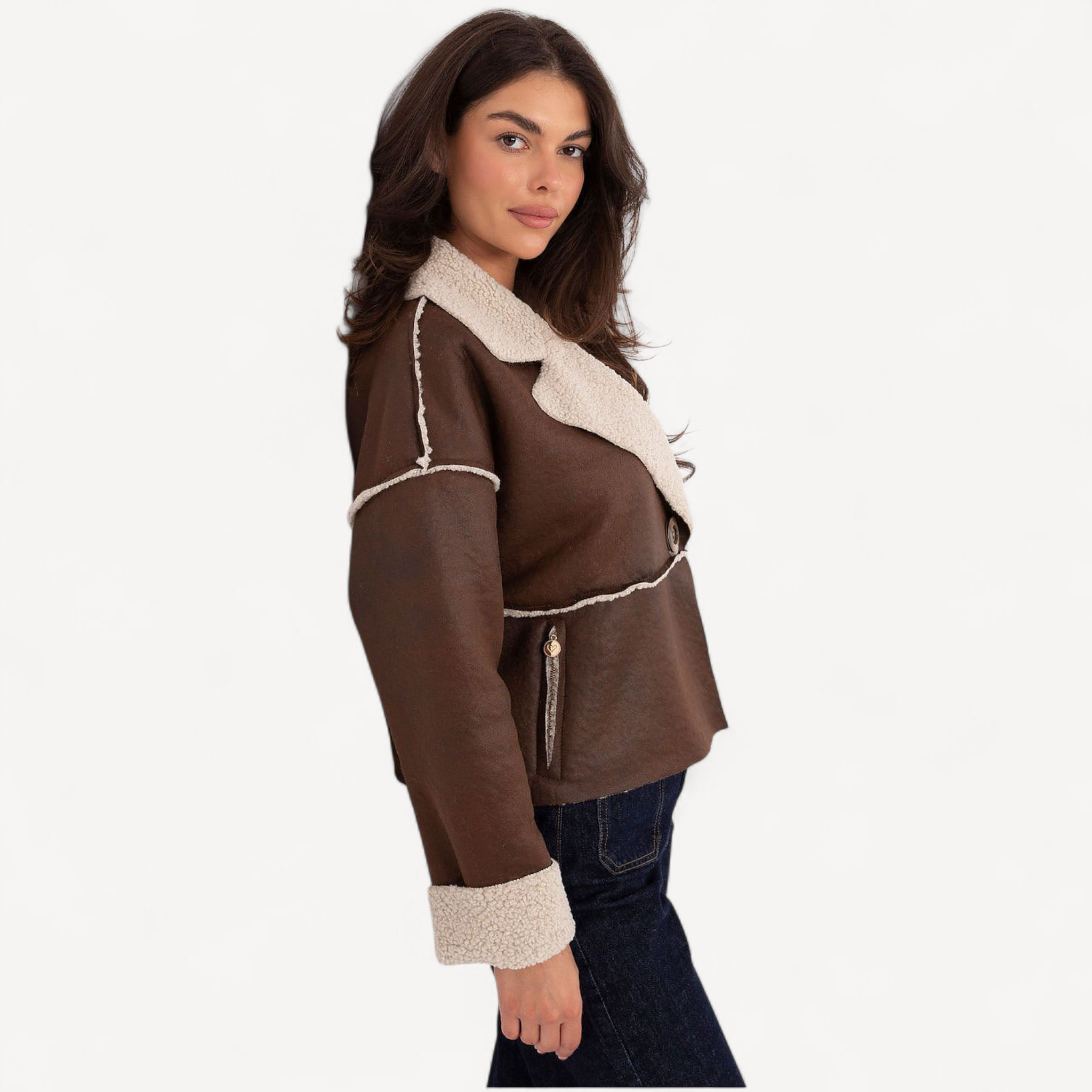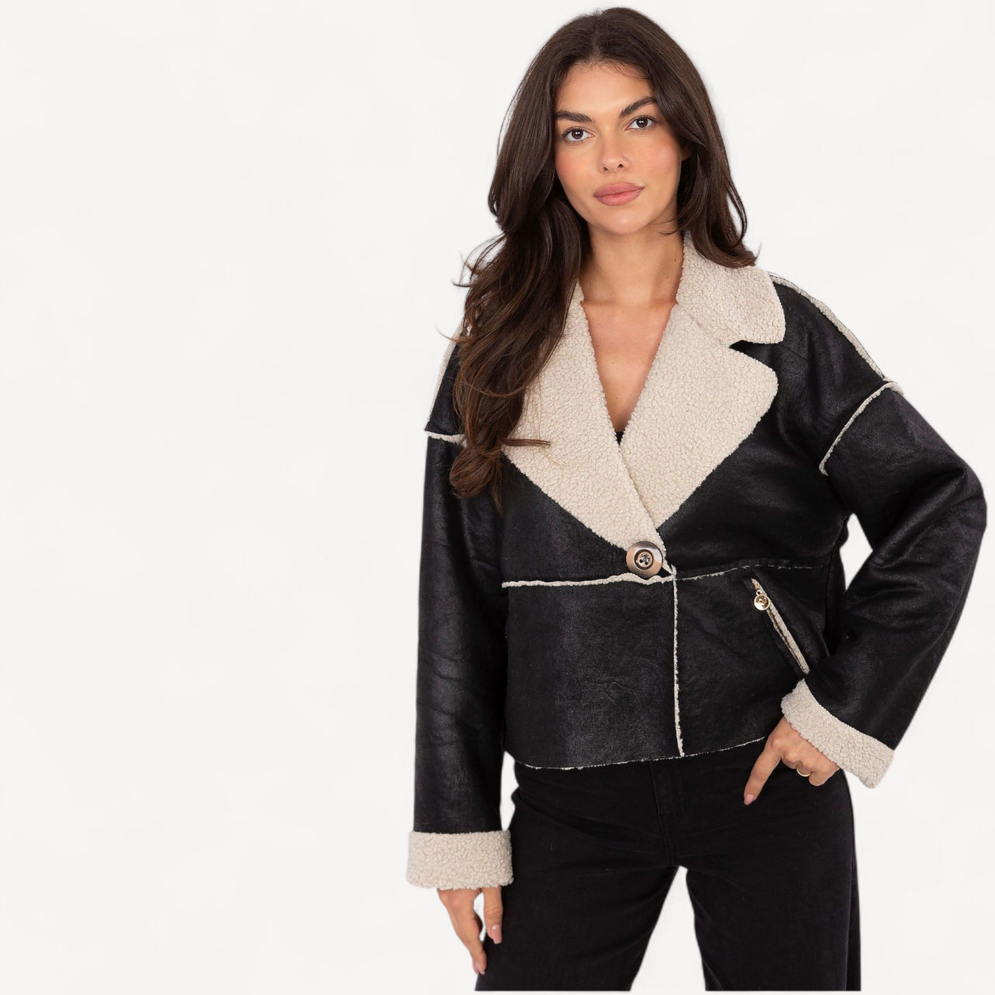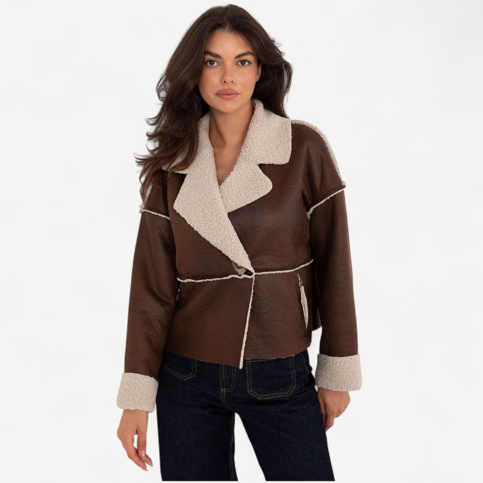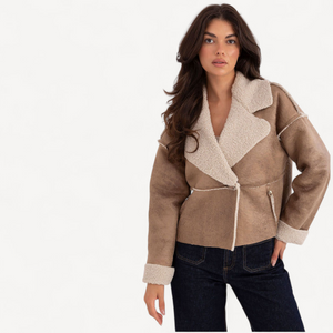 Deze stijlvolle damesjas met bontje is licht, comfortabel en perfect voor het herfst- en winterseizoen. Met korte lengte, lange mouwen en elegante revers geef je elke dagelijkse outfit een moderne twist.