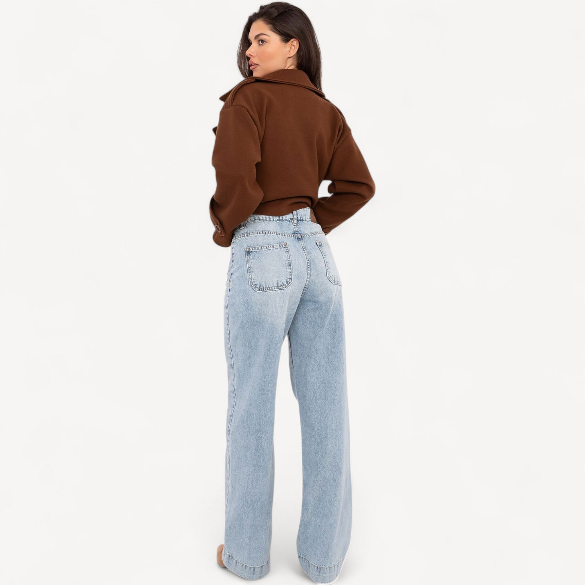 Deze dames wijde jeans van katoen combineert comfort met een luchtige, eigentijdse look. Hoge taille, wijde pijpen en praktische zakken maken hem perfect voor dagelijks gebruik, terwijl het klassieke denim makkelijk te combineren is.