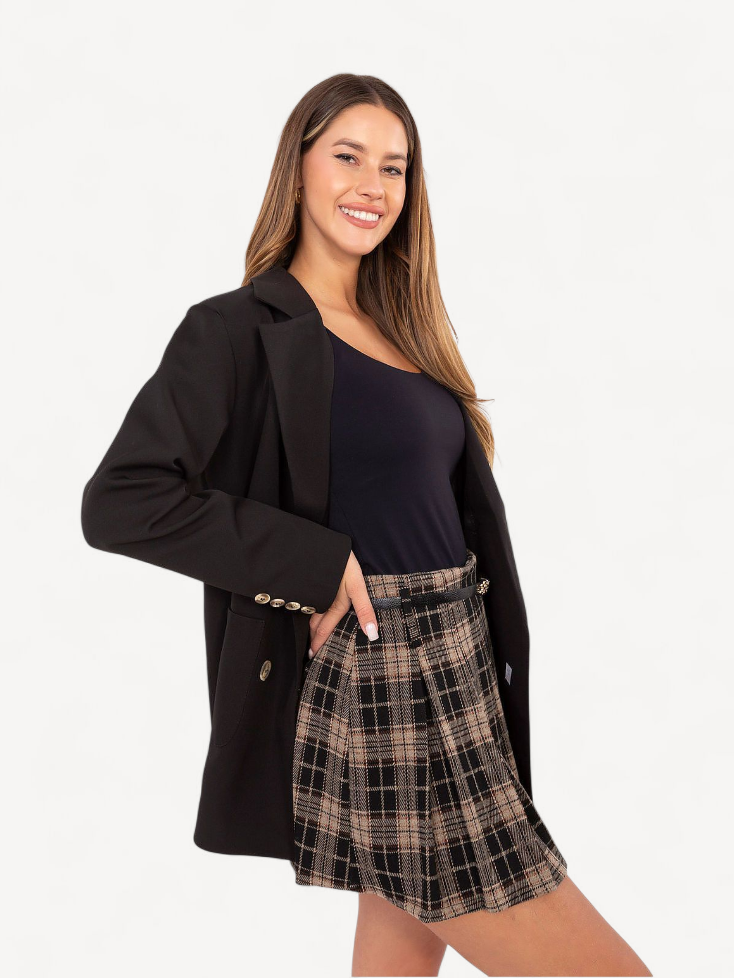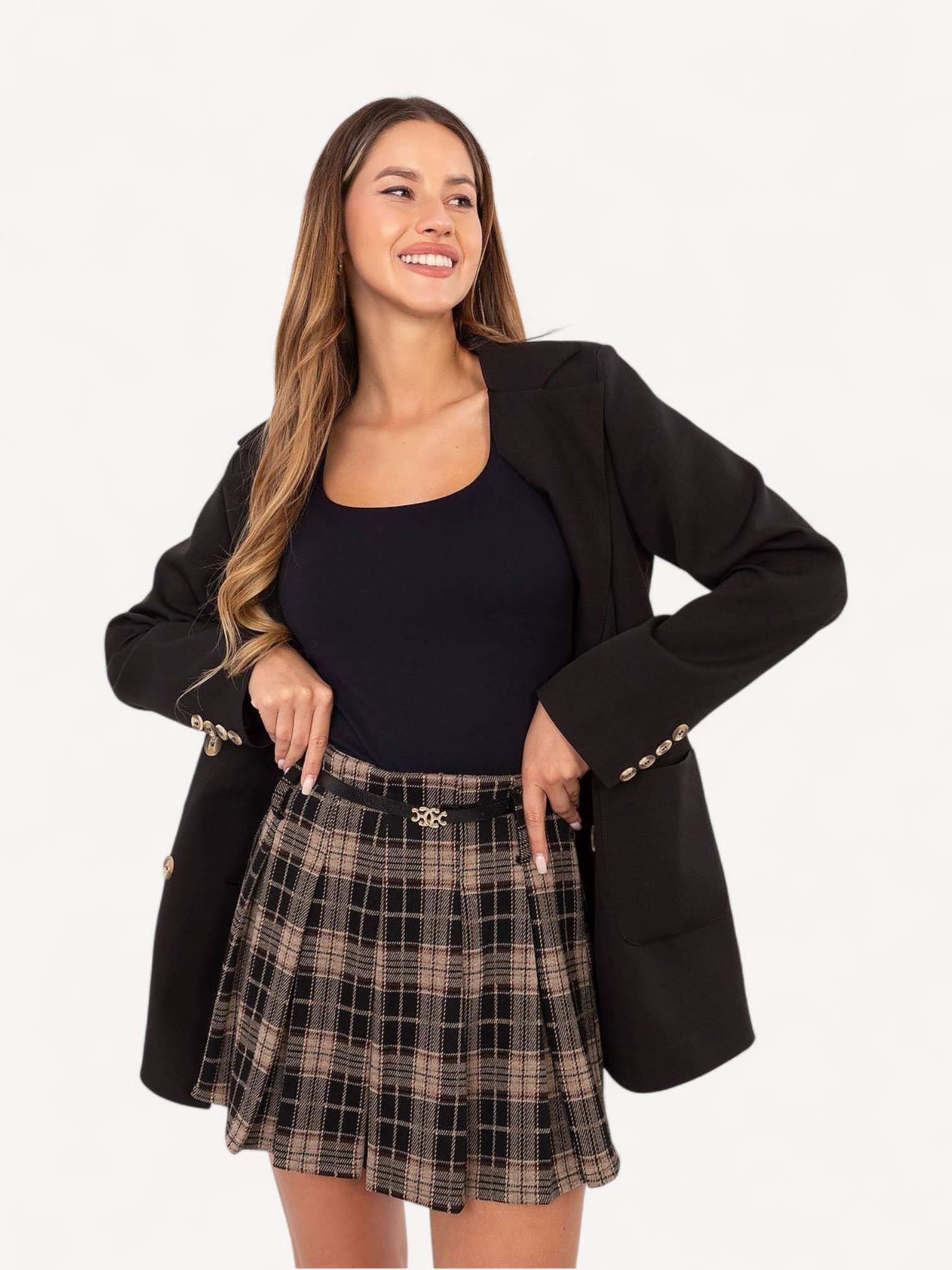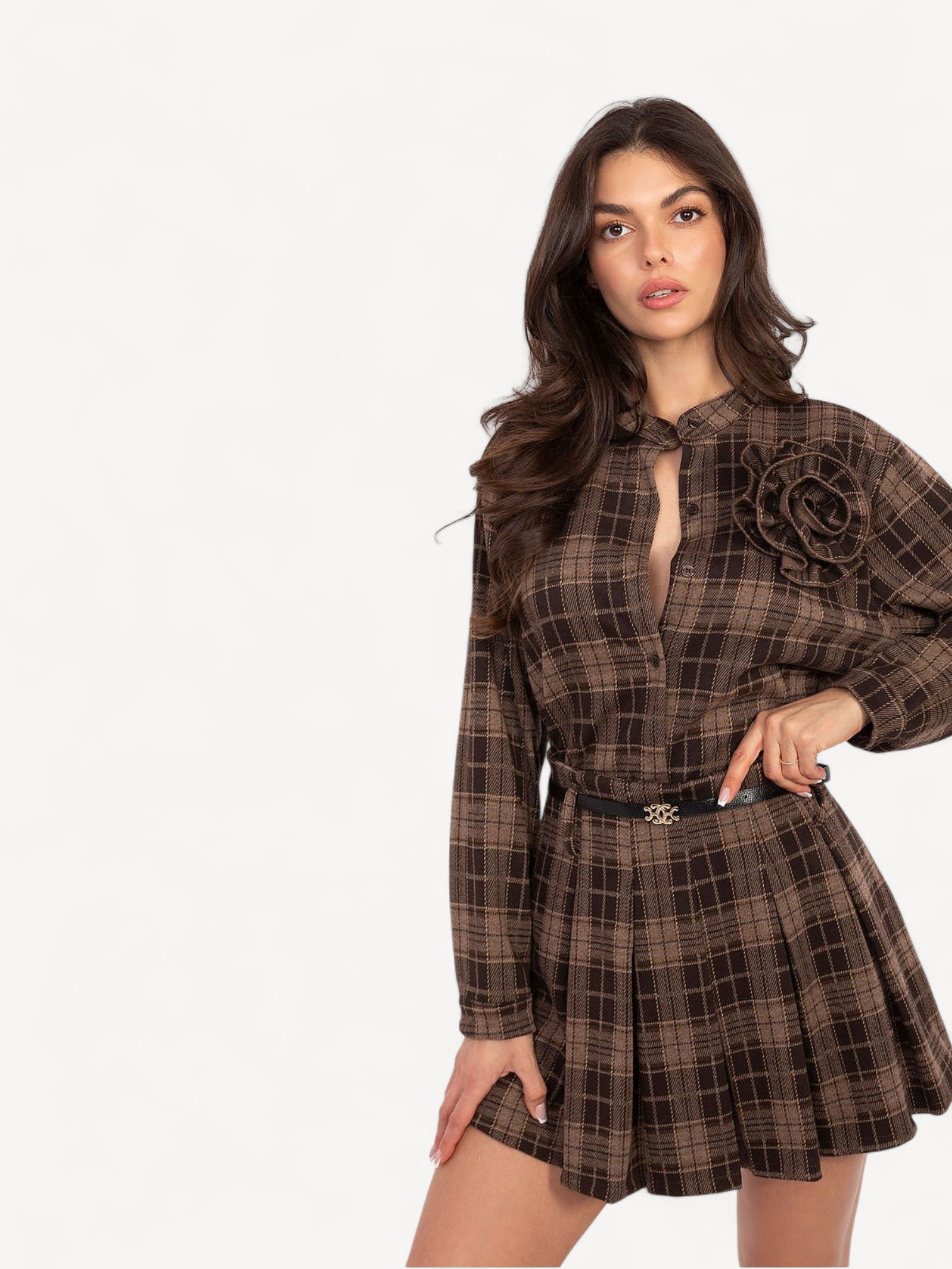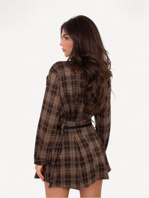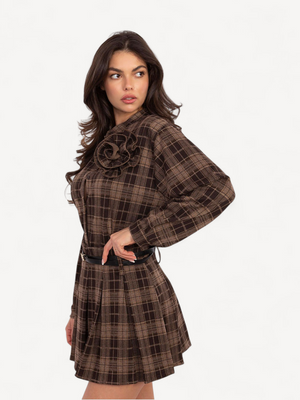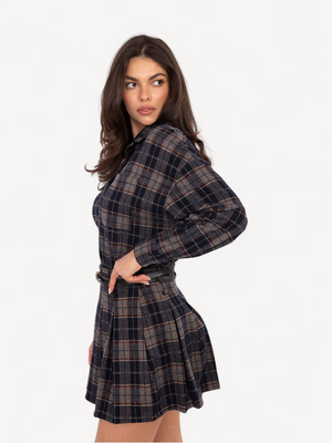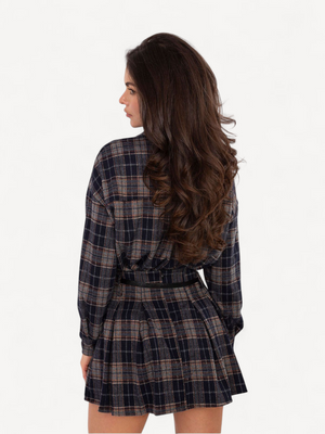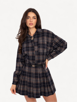minirok van een hoogwaardige mix van polyester, viscose en elastaan. Het geruite patroon en de contrasterende plooien geven een speelse, elegante look, terwijl de afneembare riem de taille accentueert. Comfortabel, licht en perfect voor zowel dagelijkse als speciale gelegenheden.