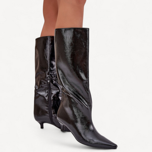 Deze dameslaarzen van eco-leer combineren stijl met draagcomfort. Instapmodel met rits, gevoerde binnenkant, puntige neus en lage hak maken ze perfect voor zowel casual jeans als elegante jurken of rokken.