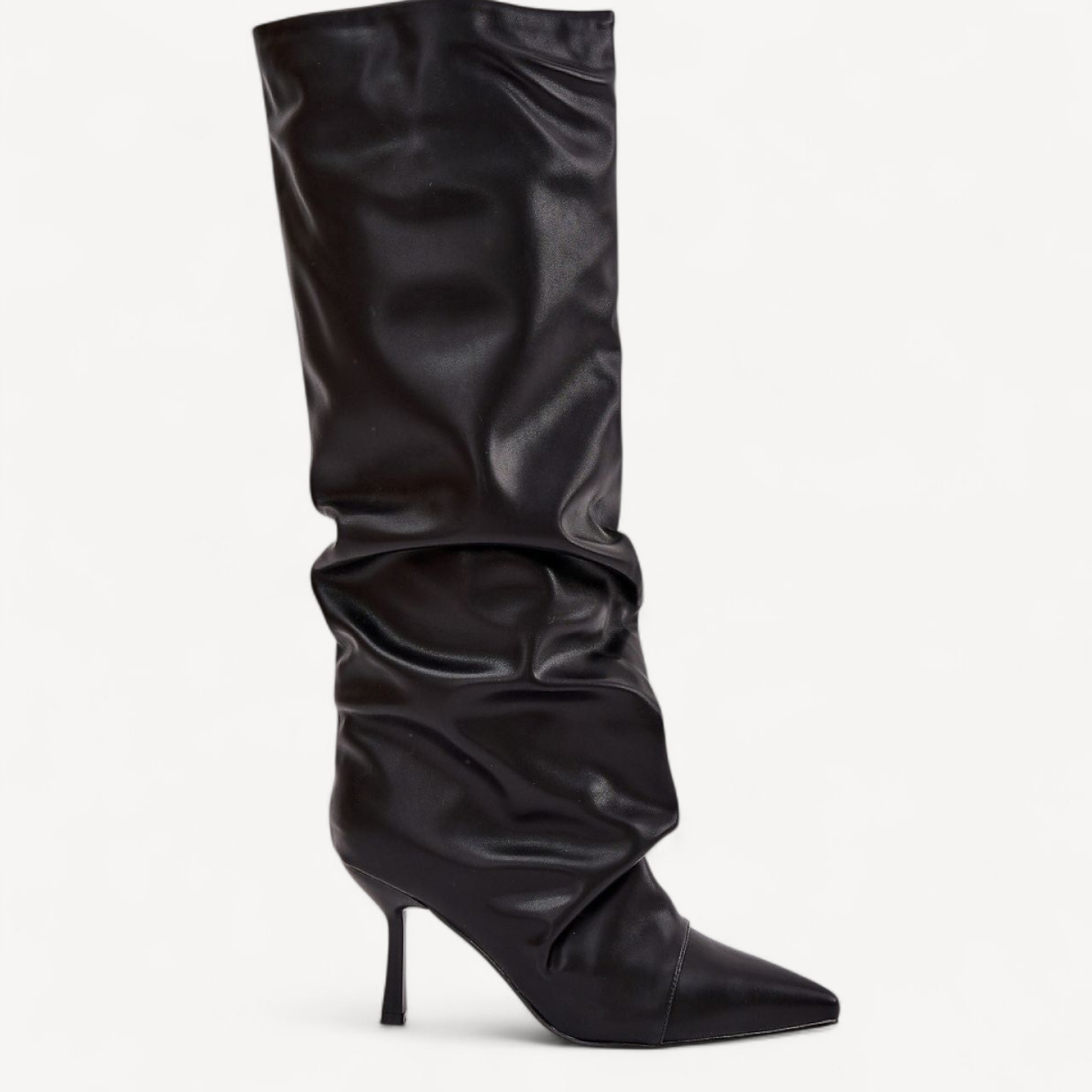 Deze dameslaarzen van imitatieleer combineren slanke hakken en een modern design met comfort. Instapmodel met plooien, gevoerde binnenkant en stijlvolle details maken ze perfect voor zowel elegante als dagelijkse herfst- en winterlooks.