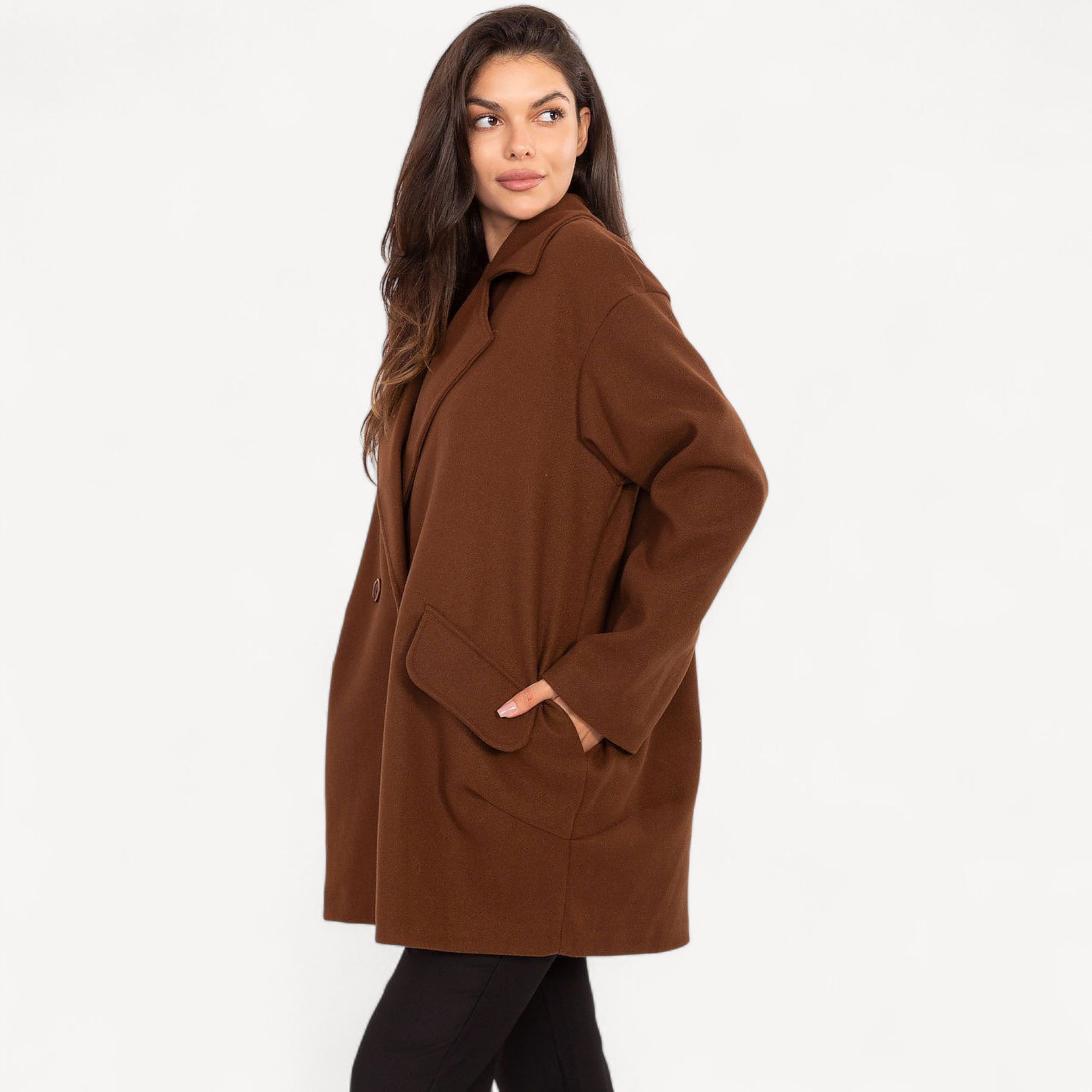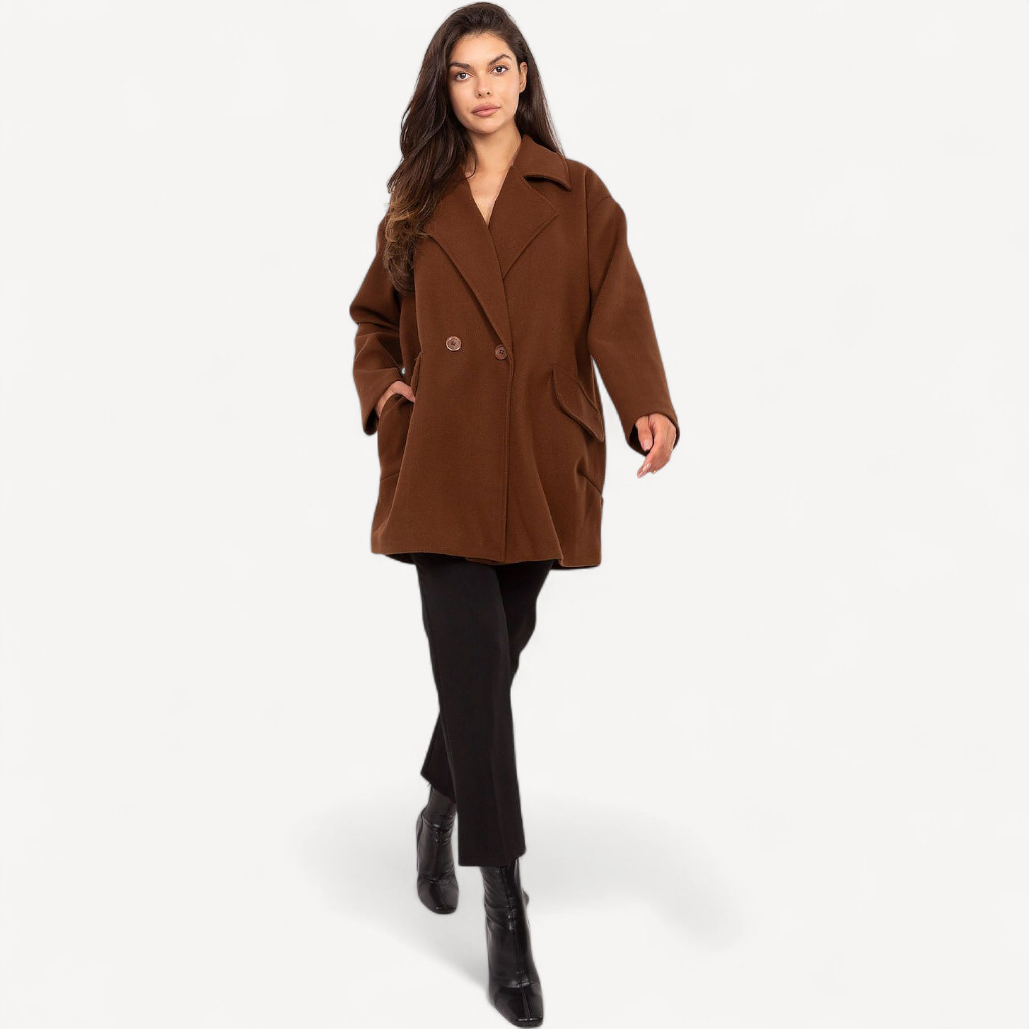 Elegant, tijdloos en veelzijdig – deze manteljas geeft elke outfit direct een stijlvolle upgrade. De klassieke snit flatteert je silhouet, terwijl de warme en comfortabele stof je beschermt tegen kou. Perfect voor zowel dagelijkse looks als speciale gelegenheden, en ideaal om te combineren met zowel casual outfits als elegante ensembles.
