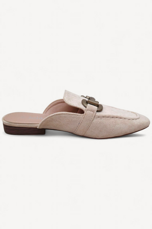 Zachte suède vibes, chique details en een instapmodel dat luxe en comfort moeiteloos mixt. The Martha is jouw go-to voor effortless elegance of je nu naar kantoor gaat, een brunch hebt of gewoon stijlvol de deur uit wilt. De klassieke horsebit sluiting geeft 'm die tijdloze designer look, terwijl de neutrale tint past bij élke outfit.