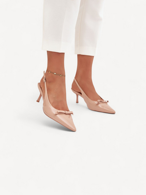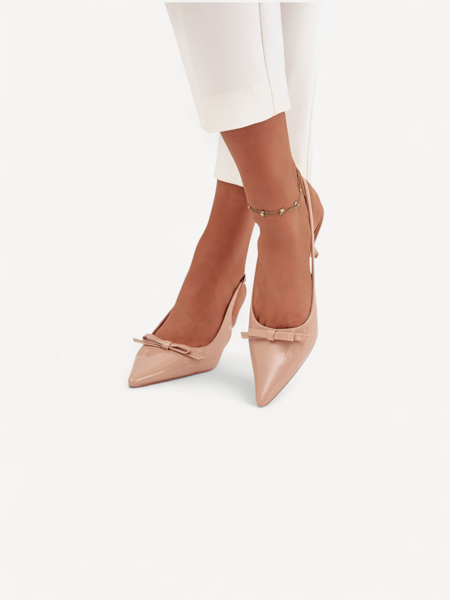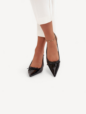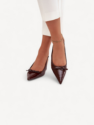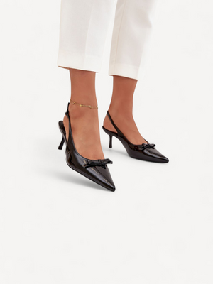 Eleganckie damskie czółenka z eko skóry to klasyka w kobiecym wydaniu. Smukła szpilka i spiczaste noski pięknie wysmuklają nogi, a kokardka z przodu dodaje butom subtelnego uroku. Model zapinany jest na sprzączkę z regulowanym paskiem, co zapewnia dobre dopasowanie i wygodę noszenia. Idealne zarówno do eleganckich stylizacji, jak i na wyjątkowe okazje.