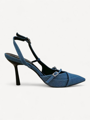 Elegante lijnen, denim met karakter en een hak die je benen eindeloos laat lijken. Deze slingback is geliefd bij it-girls om haar moeiteloze balans tussen stijl en edge. Perfect bij een jeans of juist als contrast onder een jurk