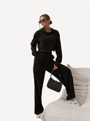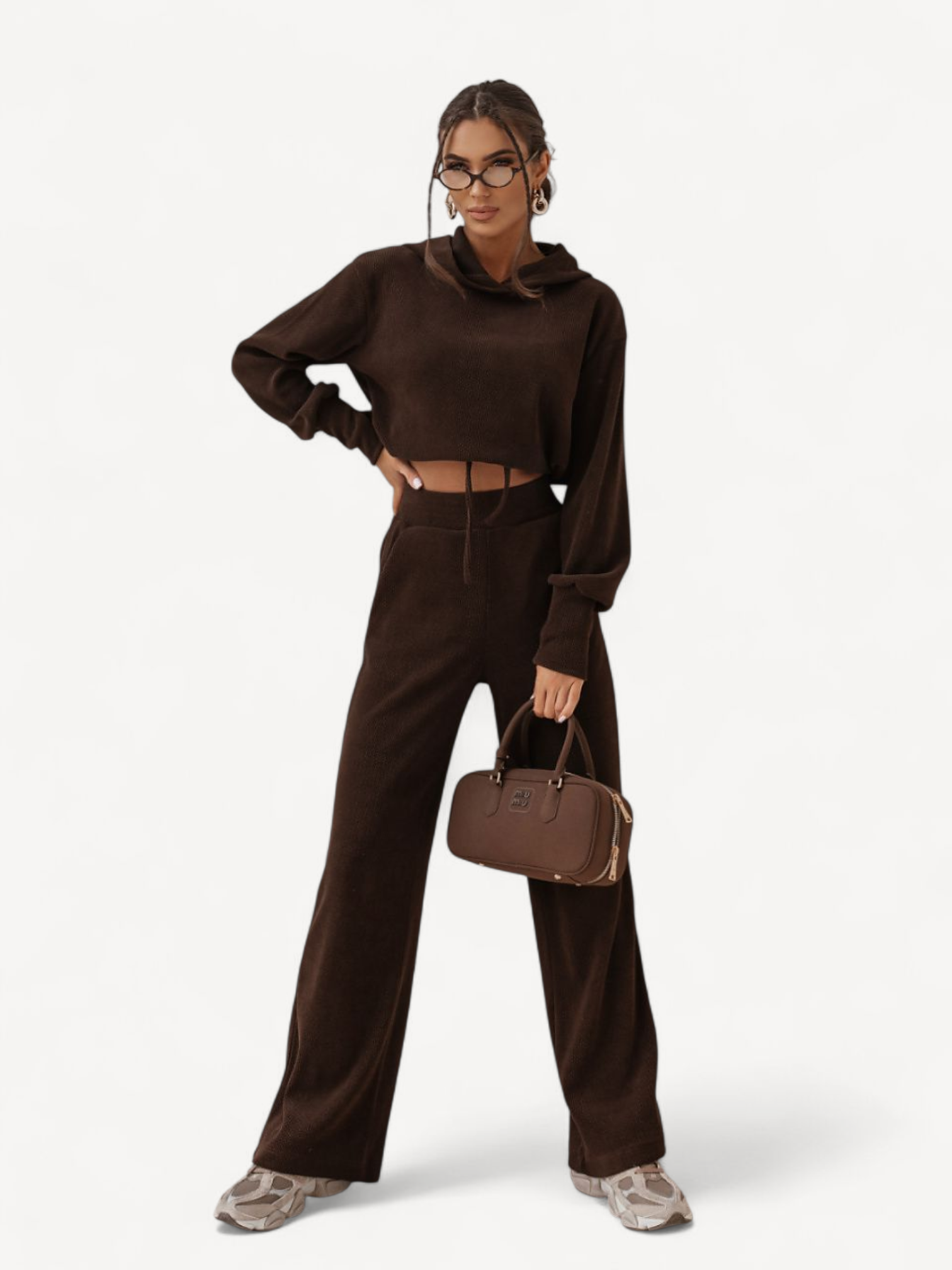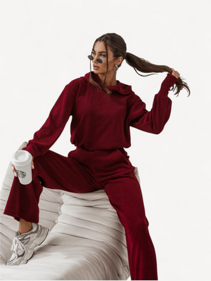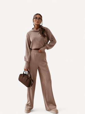 De Jacky-set bestaat uit een zachte trui en bijpassende broek voor een moeiteloos chique look. Gemaakt van 70% viscose en 30% polyester, wat zorgt voor comfort, duurzaamheid en een perfecte pasvorm. Ideaal om te dragen thuis, in de stad of bij een casual gelegenheid elegant en comfortabel tegelijk.