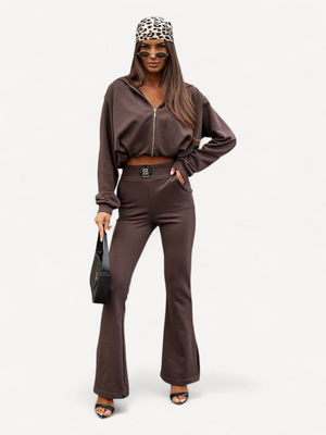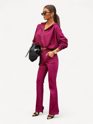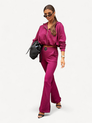 Ontdek de JULES Malina-set een elegante combinatie van trui en broek voor een modieuze, verzorgde look. Gemaakt van 95% katoen en 5% elastaan, wat zorgt voor zachtheid, flexibiliteit en draagcomfort. Perfect voor elke gelegenheid van casual tot chic altijd stijlvol en vrouwelijk.