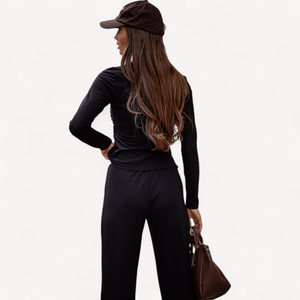 De Sophia-set combineert stijlvolle blouse en broek met ultiem draagcomfort. Gemaakt van viscose en elastaan, biedt hij een perfecte pasvorm en bewegingsvrijheid – ideaal voor dagelijkse looks én speciale gelegenheden.