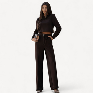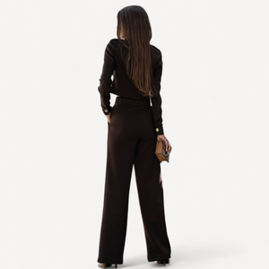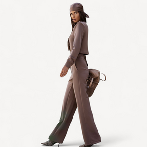 De CARMEN Karmel set van blouse en broek combineert tijdloze elegantie met ultiem draagcomfort. Gemaakt van viscose en elastaan voor een perfecte pasvorm, ideaal voor dagelijkse looks én speciale gelegenheden.