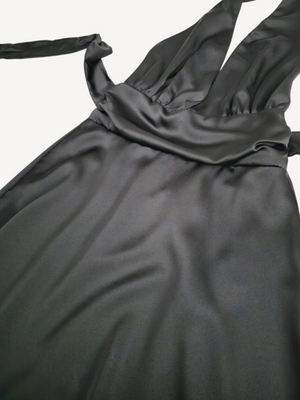 Elegant, speels en verfijnd. Deze silk mini dress heeft een V-hals, een nette en open rug, en een subtiel uitlopende rok voor een vrouwelijke, flatterende look. Perfect voor een avondje uit of een speciale gelegenheid.