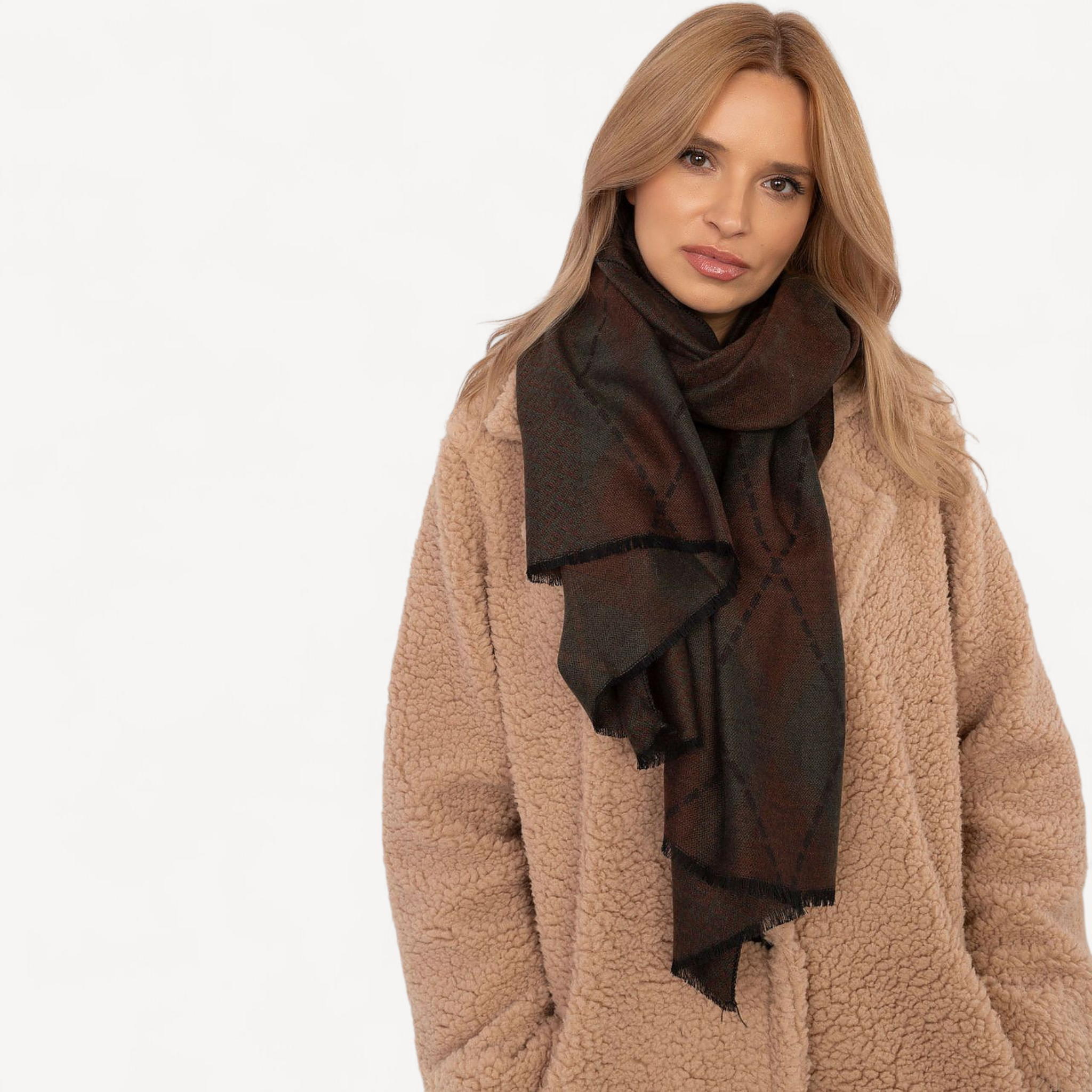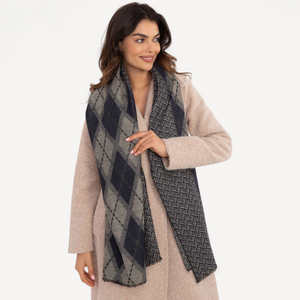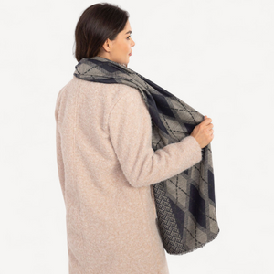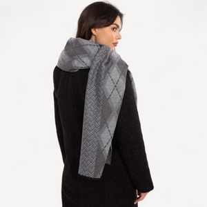 Het subtiele geometrische design maakt de sjaal veelzijdig: perfect voor je dagelijkse look én als finishing touch bij een elegante outfit. Een accessoire dat je stijl moeiteloos naar een hoger niveau tilt.
