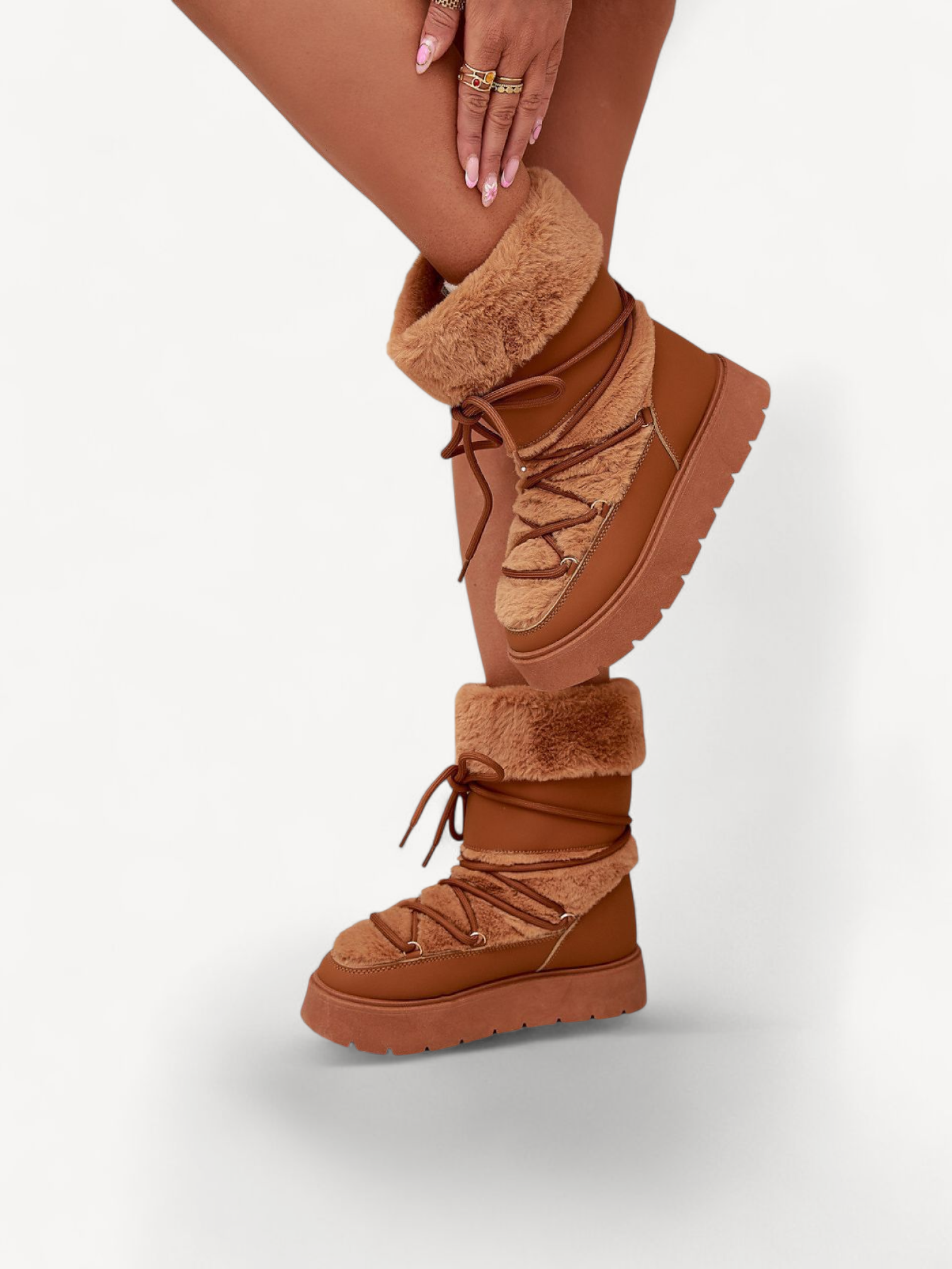 Gemaakt van hoogwaardig eco-leer en gevoerd met heerlijk zacht bont zowel binnen als buiten houden ze je voeten knus en comfortabel, zelfs tijdens de koudste winterdagen. De vetersluiting zorgt voor een perfecte pasvorm, terwijl het modieuze design elke winteroutfit compleet maakt.