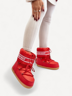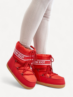 Uiterst comfortabele snowboots met ecoleeraccent en zachte voering die je voeten heerlijk warm houdt. Het slip-on model met veters zorgt voor een perfecte pasvorm, terwijl de stevige plateauzool stabiliteit biedt ideaal voor koude, gladde winterdagen.