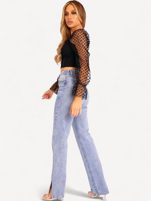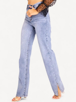 Stijlvol en modern. Deze jeans heeft rechte pijpen met een speelse split aan de zijkant, voor een trendy en flatterende look. Perfect te combineren voor zowel casual als chique outfits.