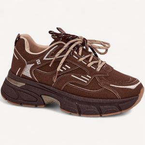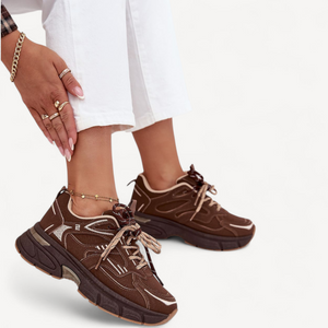 Deze dames sportschoenen van eco-leer combineren stijl met comfort. Dubbele vetersluiting, stevig platform en zacht schuimrubberen voetbed zorgen voor perfecte pasvorm en stabiliteit – ideaal voor casual dagelijkse outfits.