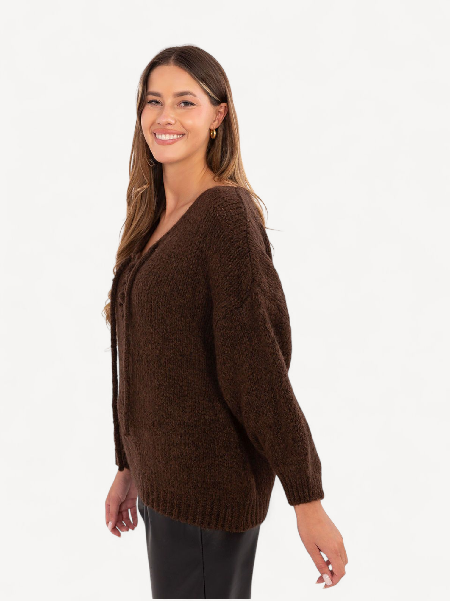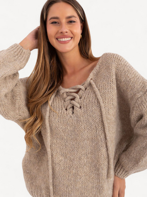 Casual damestrui van een zachte wolmix voor optimaal comfort. De korsetveter aan de voorkant geeft een vrouwelijke touch, terwijl het gladde design makkelijk te combineren is met jeans of een rok perfect voor elke dag.