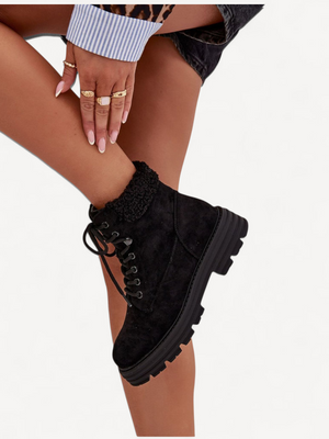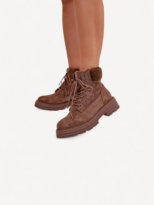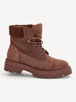 Deze boots van eco-suède combineren comfort en fashion. Met klassieke vetersluiting en zachte voering houden ze je voeten warm en passen ze perfect bij al je dagelijkse winteroutfits.