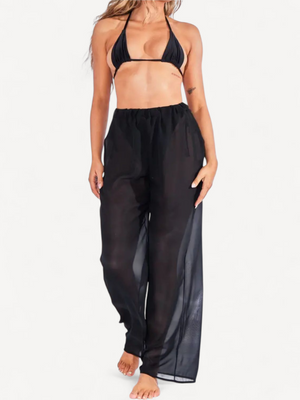 Luchtig, stijlvol en perfect voor over je zwemkleding. Deze zwarte chiffon cover-up broek biedt een elegante en comfortabele manier om je strand- of poollook compleet te maken.